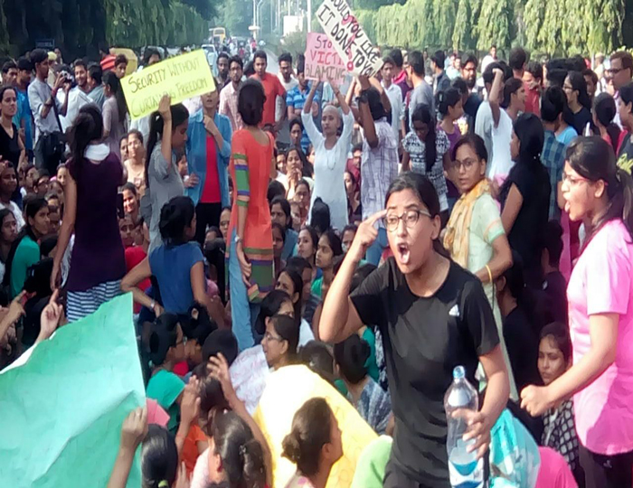 उधर प्रोटेस्ट कर रही बीएफए स्टूडेंट आकांक्षा सिंह ने विरोध के दौरान सिर के बाल मुंडवा लिया। उसका कहना है कि छेड़खानी होते रहे और हर वक्त हम खामोश रहे, ऐसा नहीं हो सकता है।