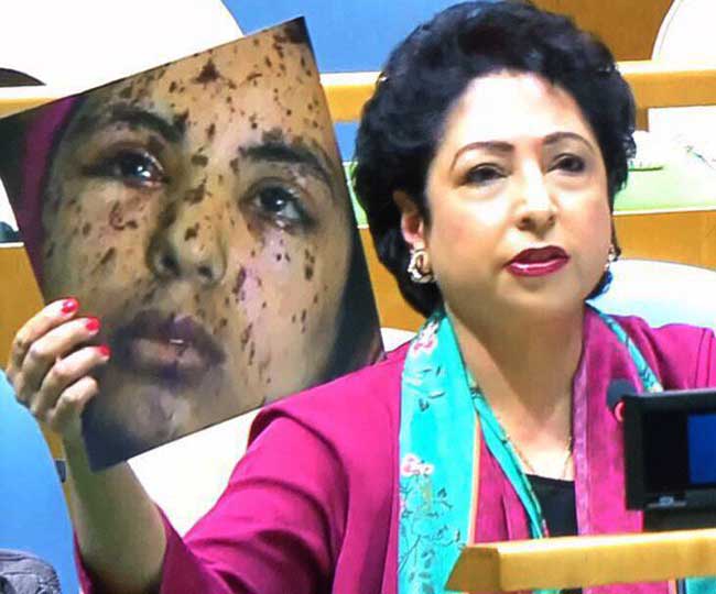 आतंकवाद के मुद्दे पर भारतीय विदेश मंत्री सुषमा स्वराज के जोरदार जवाब से तिलमिलाए पाकिस्तान ने संयुक्त राष्ट्र में भी नापाक हरकत कर ही दी। सुषमा के संबोधन पर ‘राइट टू रिप्लाई’ के तहत जवाब देते हुए संयुक्त राष्ट्र में पाकिस्तान की स्थायी प्रतिनिधि मलीहा लोधी ने कश्मीर के मसले पर पूरी दुनिया को गुमराह करने की कोशिश की और इस क्रम में अपने ही देश को शर्मसार कर डाला। लोधी ने भारत पर कश्मीर में मानवाधिकारों के हनन का आरोप लगाते हुए कथित रूप से पैलेट गन से घायल 17 साल की एक ऐसी लड़की की तस्वीर दिखाई, जिसके पूरे चहरे पर जख्म के निशान हैं। उन्होंने कहा कि यही भारतीय लोकतंत्र का चेहरा है। लेकिन मलीहा जो तस्वीर दिखा रही थीं, वह वास्तव में गाजा पट्टी के एक अस्पताल में इलाज कराते वक्त ली गई फलस्तीनी लड़की राव्या अबू जोमा की थी। वह 2014 में इजरायल के हमले में घायल हो गई थी। राव्या के घर पर बमबारी हुई थी, जिसमें उसके तीन चचेरे भाइयों और उसकी बहन की मौत हो गई थी। इस तस्वीर को प्रख्यात फोटो पत्रकार हेइदी लेवाइन ने खींचा था। गाजा में खींची गई तस्वीरों के लिए उन्हें इंटरनेशनल वूमेंस मीडिया फाउंडेशन ने पुरस्कृत भी किया था। यूरोमेडिटरेनियन ह्यूमन राइट्स मॉनिटर के संस्थापक डॉ. रैमी आब्दू ने अपने ट्विटर हैंडल पर यह तस्वीर 27 मार्च 2015 को साझा की थी।